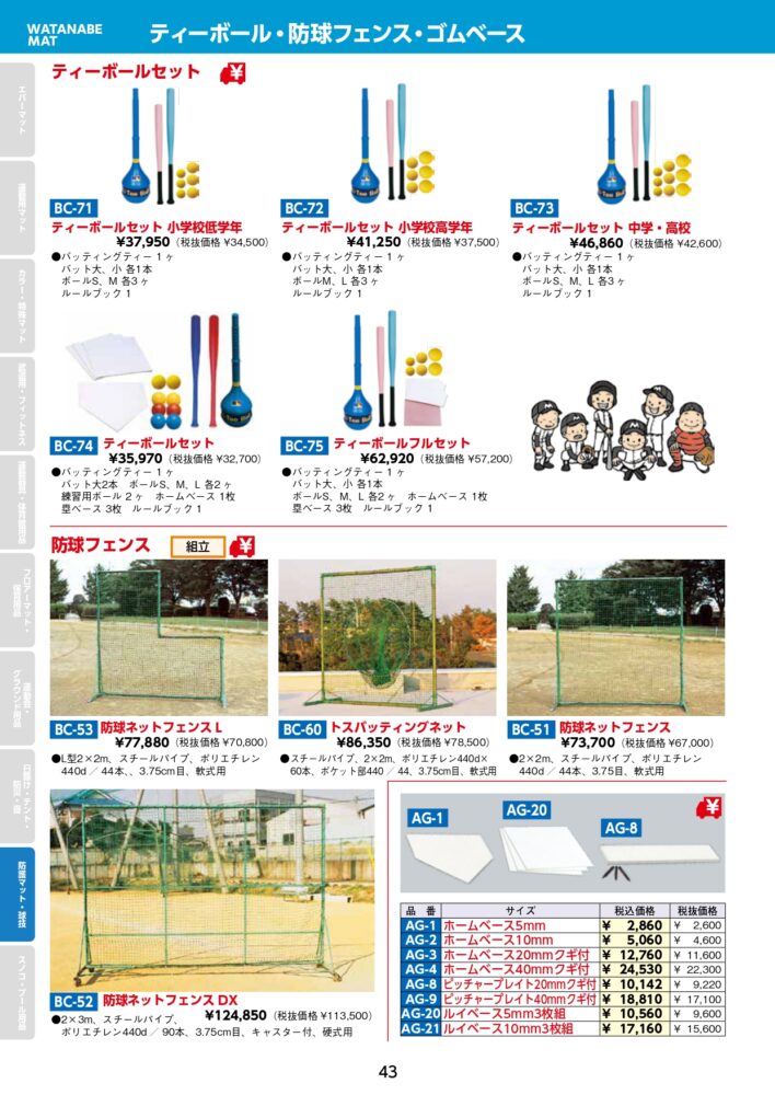 ティーボール・防球フェンス・ゴムベース